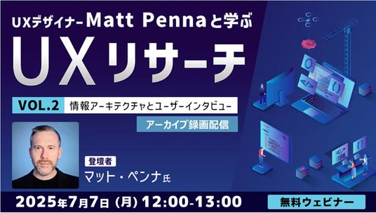 株式会社クリーク・アンド・リバー社(C&R社)は7月7日(月)、今年5月にWeb業界などで活躍するクリエイターの方などを対象に開催したオンラインセミナー「UXデザイナーMatt Pennaと学ぶ『UXリサーチ』Vol. 2 情報アーキテクチャとユーザーインタビュー」のアーカイブ映像を無料配信します。なお、本セミナーは英語で実施しましたが、今回は日本語通訳版を配信します。