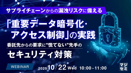 マジセミ株式会社は「サプライチェーンからの漏洩リスクに備える「重要データ暗号化・アクセス制御」の実践」というテーマのウェビナーを開催します。