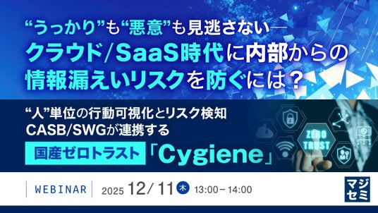 マジセミ株式会社は「“うっかり”も“悪意”も見逃さない──クラウド/SaaS時代に内部からの情報漏えいリスクを防ぐには?」というテーマのウェビナーを開催します。