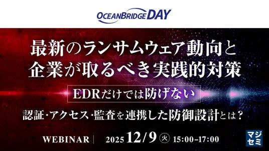 マジセミ株式会社は「最新のランサムウェア動向と企業が取るべき実践的対策【OCEANBRIDGE DAY】」というテーマのウェビナーを開催します。
