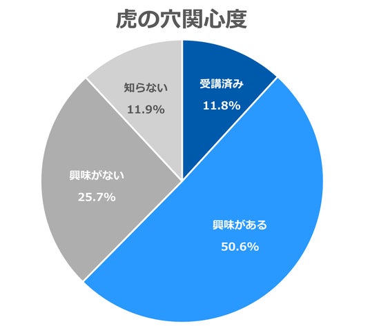 ・ 2024年2月より開始した、GMOインターネットグループオリジナルのリスキリング施策である、短期AI人材育成プログラム「虎の穴」について、「受講済み」が11.8%、「興味がある」が50.6%という結果となりました。