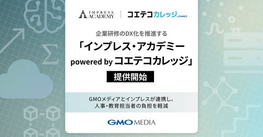 GMOインターネットグループのGMOメディア株式会社(代表取締役社長:森 輝幸 以下、GMOメディア)と株式会社インプレス(代表取締役社長:高橋隆志 以下、インプレス)は、教育事業プログラム「インプレス・アカデミー」をリニューアルし、2025年9月2日(火)より「インプレス・アカデミー powered by コエテコカレッジ」(以下、「インプレス・アカデミー」)として開講いたします。