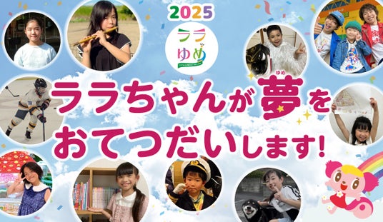 株式会社イオンファンタジーが2003 年よりスタートした「ララゆめ ~ララちゃんが夢をおてつだいします!~」では、これまでに 330 を超える夢をかなえるおてつだいをしてきました。「夢を持つことの大切さをお子さまとそのご家族に伝えたい」という想いから、全国から発想豊かで自由な夢を募集し、厳正な選考の結果選ばれた夢を当社の人気キャラクター「ララちゃん」がおてつだいします。