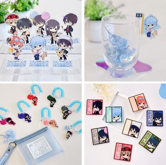 注目は、ドリンクの目印として使える「グラスマーカー」。カフェのドリンクに添えることで、銀八先生たちと一緒に文化祭を楽しんでいるような気分が味わえるアイテムです。推しのキャラをグラスに飾って写真を撮れば、思い出もばっちり! カフェご来店の記念にぴったりのおススメアイテムです♪ この他にも、大理石の様なマーブル模様がオトナかわいい「アクリルステッカー」など、色鮮やかで楽し気なアイテムを多数ご用意しております。