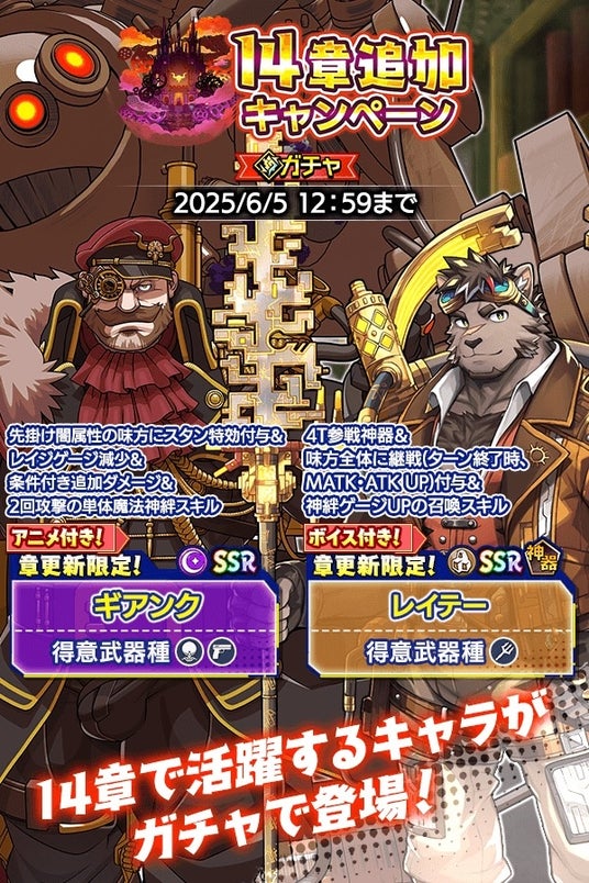 SSR魂友「ギアンク」とSSR神器「レイテー」がピックアップされた「14章追加キャンペーンガチャ」をお見逃しなく。