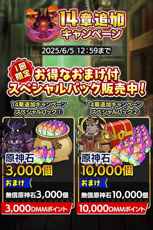 14章追加を記念して1回購入限定の「14章追加キャンペーン」スペシャルパックが2種期間限定で登場!