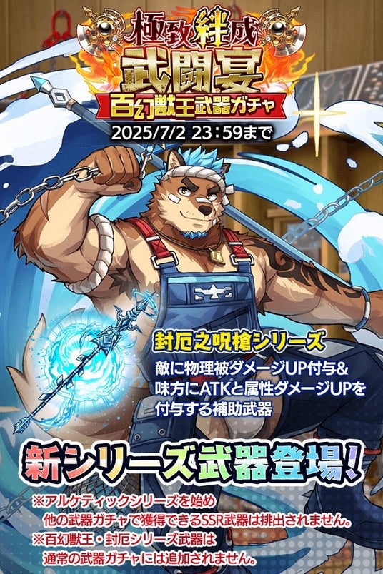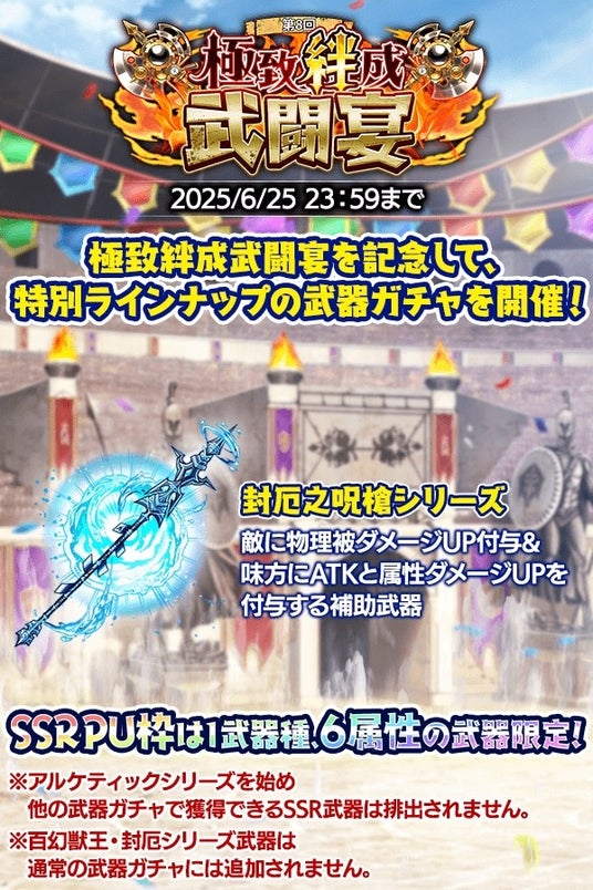 さらに『極致絆成武闘宴武器ガチャ』にも新たなシリーズ『封厄之呪槍シリーズ』が追加されました!こちらもお見逃しなく!