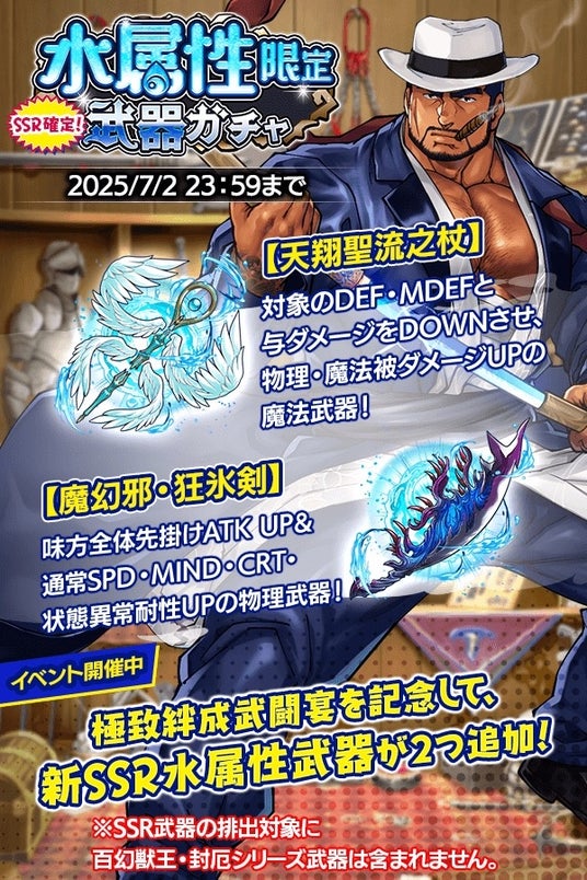 ※『水属性限定武器ガチャ』『極致絆成武闘宴武器ガチャ』は6月19日(木)メンテナンス終了後~7月2日(水)23:59まで