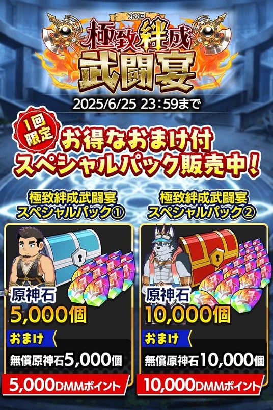 イベント期間中、原神石がおトクに購入できる「第8回極致絆成武闘宴スペシャルパック」が2種登場!