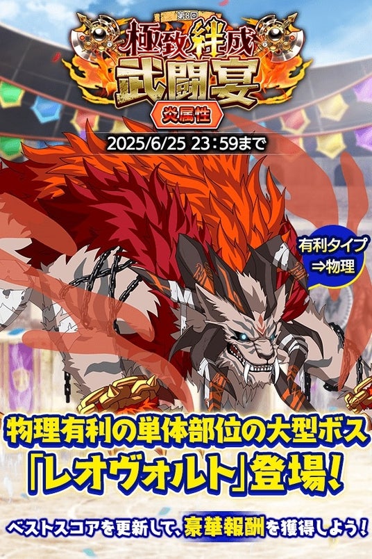 合同会社EXNOA(本社:東京都港区、CEO:村中 悠介、URL:https://games.dmm.com/)が運営するDMM GAMESにおいて本日6月19日(木)より、共感できる「推し」が見つかるRPG『クレイヴ・サーガ 神絆の導師』にて極致絆成武闘宴が開催されたことをお知らせいたします。
