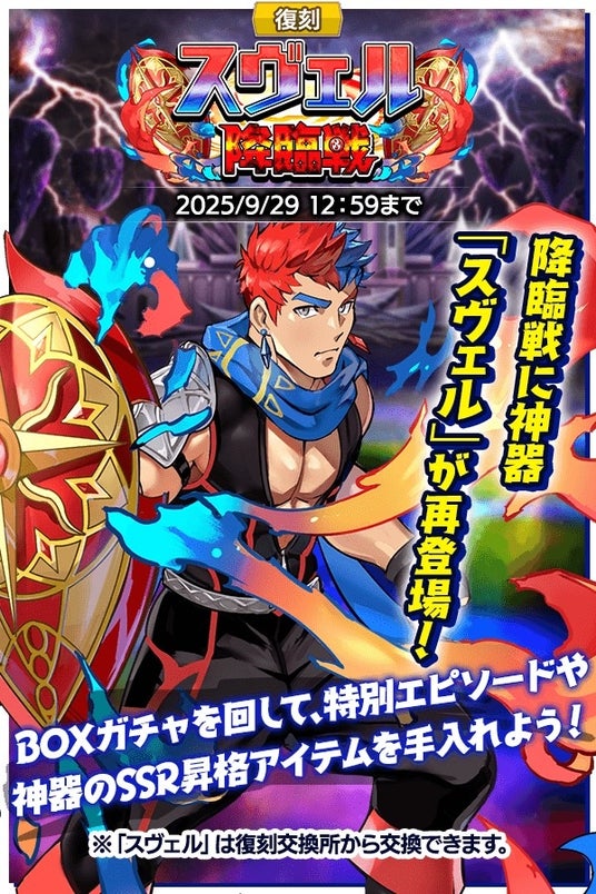 降臨戦に神器「スヴェル」が再登場!スヴェルは復刻交換所で入手可能です。