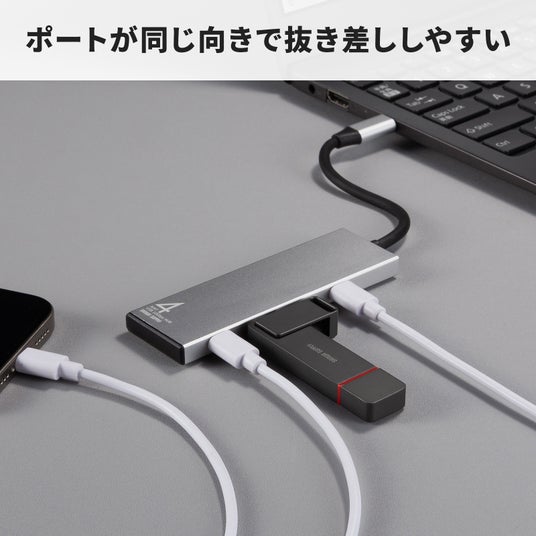 全ポートが同じ向きに配置されているので、スムーズに抜き差しできます。