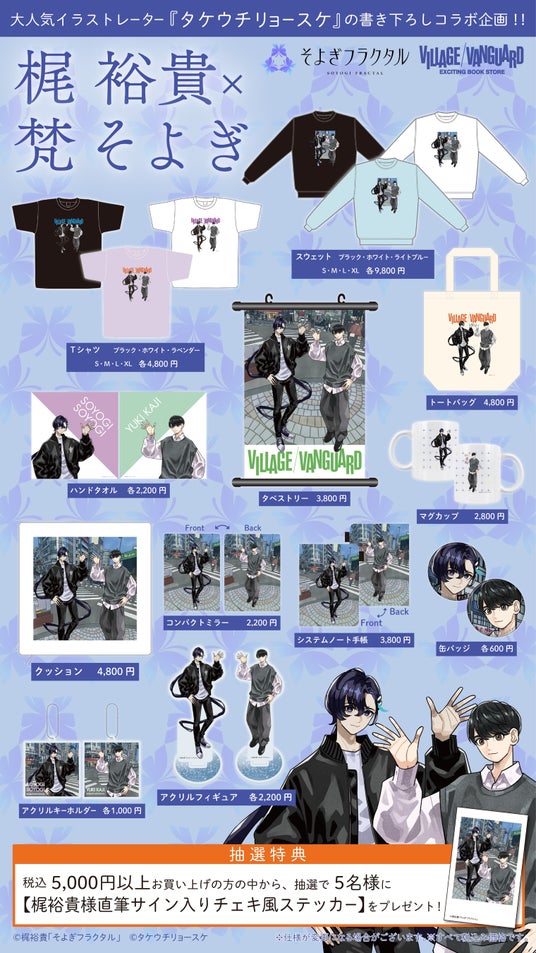 2025年3月20日(木)より、大人気声優の「梶裕貴」さんと梶裕貴さんの声を元にした音声合成ソフト「梵そよぎ」のコラボグッズがヴィレッジヴァンガードに登場!