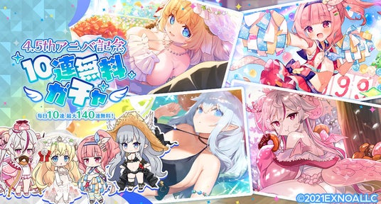 4.5thアニバーサリーを記念して、10連無料ガチャを開催中!過去に実装した一部限定、新限定★3キャラもラインナップ入り!ぜひこの機会に、毎日ログインしてプレイしてくださいね♪