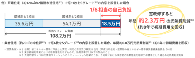 ・ポイント:国補助も併せて利用すると、断熱リフォーム費用の自己負担を1/6相当に軽減