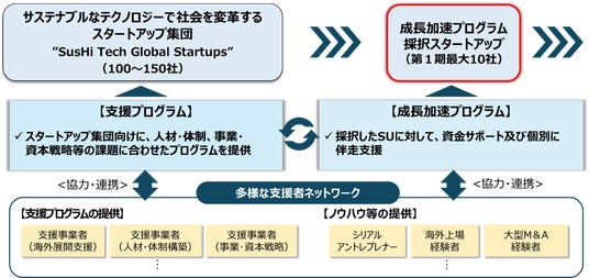 この度、”SusHi Tech Global Startups”の中でも、今このタイミングにグローバル展開を進めることで急速な“スケールアップ”が期待できるスタートアップに対して、資金サポートとオーダーメイド型の伴走支援の提供を行う「成長加速プログラム(第1期)(以下「本プログラム」という。)」を実施しますのでお知らせします。