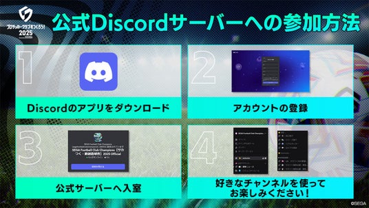 公式Discordサーバーでは、タイトルや『サカつく』シリーズに関するさまざまな話題について、ユーザー同士で交流をお楽しみいただけます。開発メンバーも登場予定ですので、お好きなチャンネルでお楽しみください。