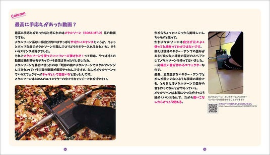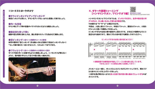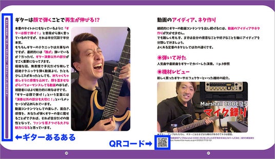 「ギターあるある」や関連動画(QRコード)も随所に登場!