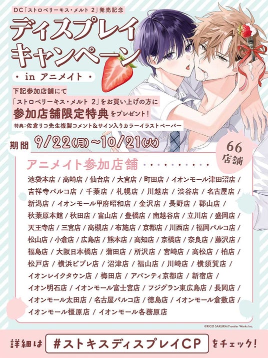 期間中、店頭ディスプレイ参加店舗にて、「ストロベリーキス・メルト 2」をお買い上げの方に、参加店舗限定描き下ろしペーパーをお渡し!