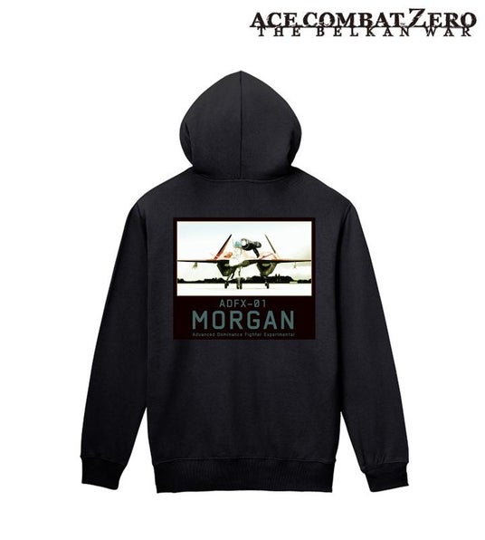 『エースコンバット』シリーズのオリジナル戦闘機「ADFX-01 MORGAN」のビジュアル、インタビューシーンのビジュアルをジップパーカーに仕上げました。