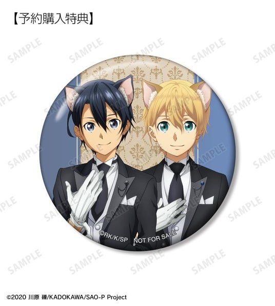 当商品を1BOX、または単品にて1BOX相当数ご注文ごとに、予約購入特典として「描き下ろし キリト&ユージオ 猫耳執事・メイドver. 75mm缶バッジ AMNIBUS限定特典」を付属いたします。
