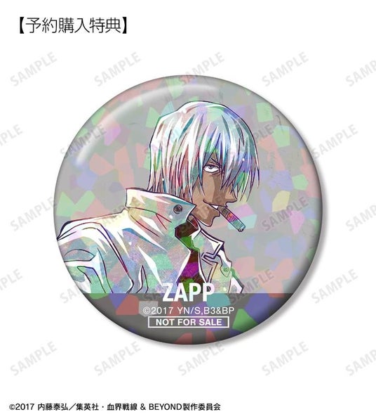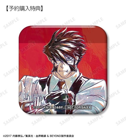 クラウス・V・ラインヘルツ、レオナルド・ウォッチ、ザップ・レンフロ、スティーブン・A・スターフェイズ、チェイン・皇、ツェッド・オブライエン、K・K、ギルベルト・F・アルトシュタインのイラストを新たなタッチで魅力的に表現し、メタリック仕様の缶バッジに仕上げました。