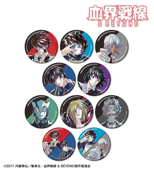 クラウス・V・ラインヘルツ、レオナルド・ウォッチ、ザップ・レンフロ、スティーブン・A・スターフェイズ、チェイン・皇、ツェッド・オブライエン、K・K、ギルベルト・F・アルトシュタインのイラストを新たなタッチで魅力的に表現し、缶バッジに仕上げました。