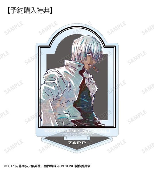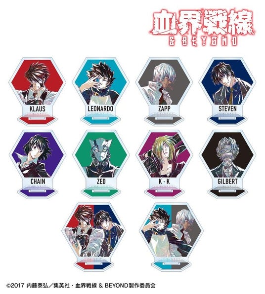 クラウス・V・ラインヘルツ、レオナルド・ウォッチ、ザップ・レンフロ、スティーブン・A・スターフェイズ、チェイン・皇、ツェッド・オブライエン、K・K、ギルベルト・F・アルトシュタインのイラストを新たなタッチで魅力的に表現し、アクリルスタンドに仕上げました。
