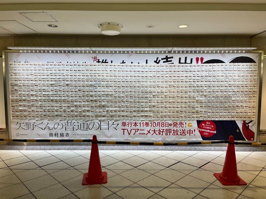 講談社「コミックDAYS」で好評連載中のマンガ『矢野くんの普通の日々』は、2025年9月30日よりTVアニメ放送がスタートいたしました。これを記念し、池袋駅「池袋オレンジボードII」にて、オリジナル仕様のピールオフ広告を展開いたします。