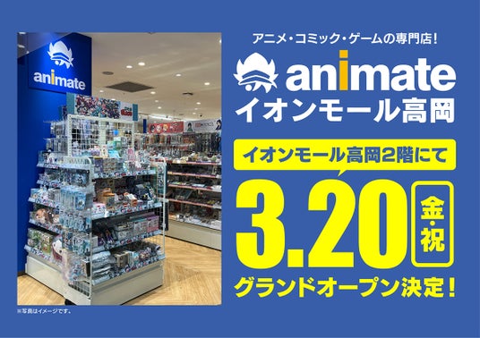 株式会社アニメイトは、富山県に2店目となる「アニメイトイオンモール高岡」のグランドオープン日を、2026年3月20日(金・祝)に決定いたしました。