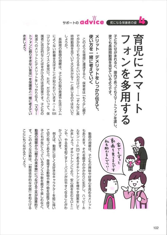 気になる保護者のケースでは「自分を責めて落ち込む」「子どもを褒められない」「育児にスマートフォンを多用する」「遅刻が多い」など、実態に即した10例をご紹介。「愛着障害」「発達性トラウマ障害」「うつ病」「適応障害」といった背景知識とともに、わかりやすく解説しています。