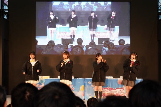 本ステージでは、μ'sから飯田里穂(星空 凛役)、AiScReamから降幡 愛(黒澤ルビィ役)・大西亜玖璃(上原歩夢役)・大熊和奏(若菜四季役)が登壇し、ラブライブ!シリーズやラブカの最新情報を発表いたしました。