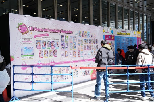 ラブカ感謝祭の描きおろしイラストを使用した総勢50人のメンバーのスタンディやラブライブ!シリーズの15周年の軌跡を辿る年表、ラブカのカード展示等を行いました!