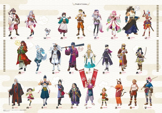 表紙のメインビジュアルと、アズマの里の住人たちの身長比が一目でわかる比較図を両面に配した大判ポスターです。