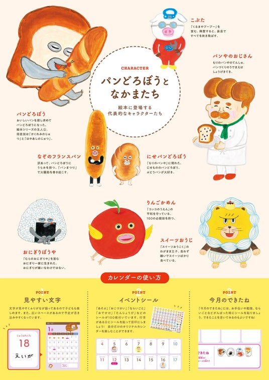 春夏秋冬、パンどろぼうを楽しめるシール付きカレンダーが登場!