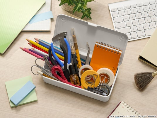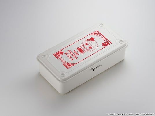 有馬かなのイメージカラーであるホワイトの本体に、デフォルメイラストをプリントした特別仕様の東洋スチール製「ツールボックス 有馬かなカラーver.」(約203×109×56mm)が付属!シンプルかつ丈夫なプレス一体型成型で、工具や小物をたっぷり収納可能です。