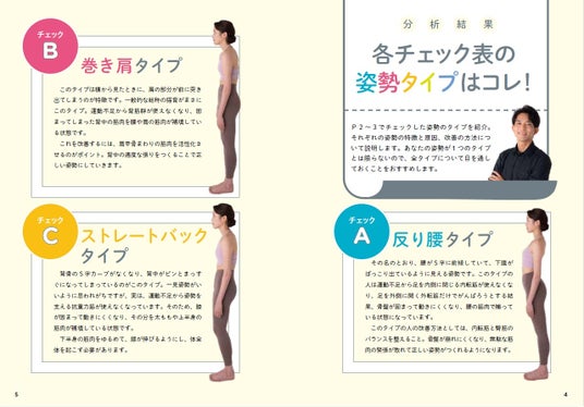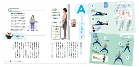 各タイプの姿勢を改善するためのマッサージ+エクササイズをていねいに紹介しています。