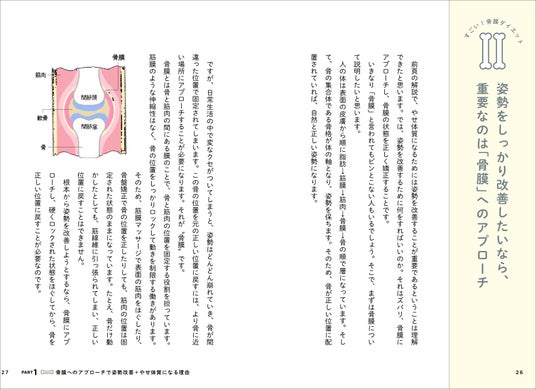 本書では、一時的な矯正ではなく、体の根本からしっかり姿勢を改善していくことで、気づけばやせ体質になれるメソッドを収録。