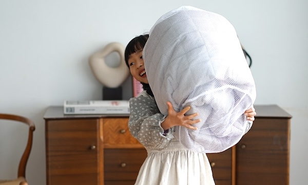 洗濯できるということは軽くないと使いづらいという考えから、軽さにもこだわり、子供が1.5畳を持てるくらいの「超軽量」を実現。ふんわり軽い仕上がりで、使いやすさにもこだわっている。