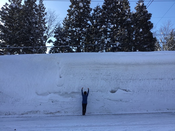 そして、上の写真は2025年2月25日(火)に同じ場所から撮影されたもの。今年は最大430cmの積雪で、看板が埋もれているのがわかる。