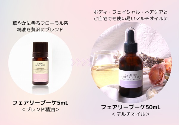 マルチに使えるヘア&ボディオイル「マルチオイル フェアリーブーケ」50mL・3,740円(税込)として、オンラインショップおよび関連企業店舗にて、4月7日(月)に150本限定で発売した。