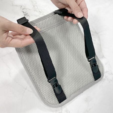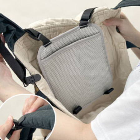 「amorio 保冷シート」は、「背負う」「装着する」「敷く」といった3WAY仕様であることも嬉しいポイント。リュックのように背負えば、活発に動き回る時期のベビーにも対応可能。抱っこ紐やベビーカー、チャイルドシートへの装着も簡単で、どんなシーンでも頼りになる。
