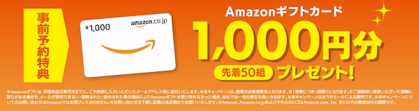 新店舗のオープンにあたり、事前予約特典として先着50組にAmazonギフトカード1,000円分を進呈。