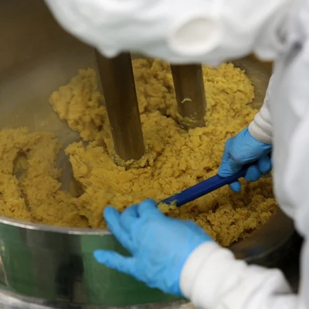 製造工程でも工夫を施している。紅はるかの個体差や水分量の違いに左右されないよう、スチーム窯で約50分間、職人がつきっきりで混ぜ合わせる。きび糖を加えるタイミングや混ぜ方は長年の経験が頼り。これにより紅はるか本来の香りと味わいを引き出すそう。