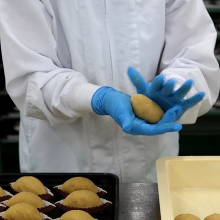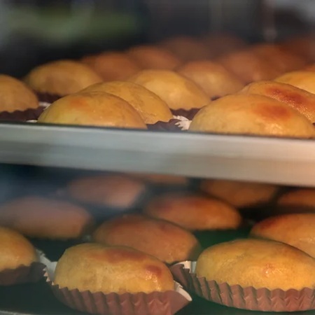 また、多い日で1日に1,200個を焼き上げる人気商品でありながら、その成形は一つひとつ職人の手作業によって行われている。手のひらでやさしく形づくられた生地は自然に空気を含み、ふっくらとしたやわらかな食感へとつながるそう。効率を優先するのではなく、手仕事を大切にする姿勢こそが、他にはない上質な味わいを生み出しているという。