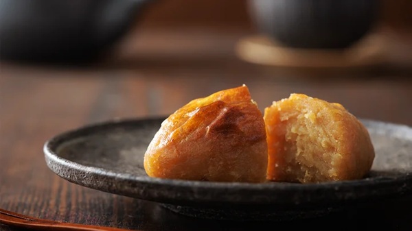 やさしく手のひらで成形された「すいーとぽてと」は、生地の中にほどよい空気を含んでいる。焼き上がるにつれその空気が外へと抜け、側面に現れるひび割れ(クラック)は、手づくりならではの証。ひとつひとつ丁寧に仕上げられたからこそ生まれる、素朴でありながら奥深い美味しさのサインだそう。
