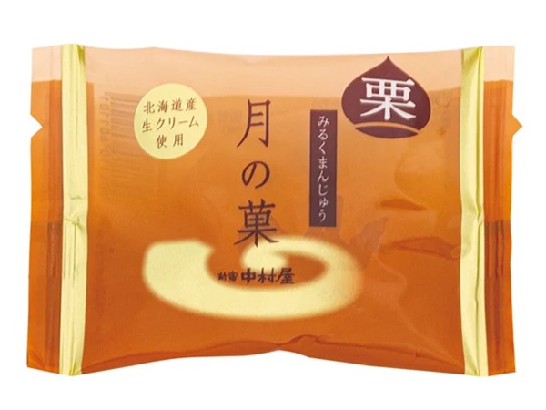 「月の菓」は、北海道産生クリームを使用した自家製みるく餡を、口どけのよいしっとりした生地で包んだ人気の和菓子。今回、風味のよいイタリア産の栗ペーストを2種類使用した「月の菓 栗」が新商品として加わった。価格は130円(税込)だ。
