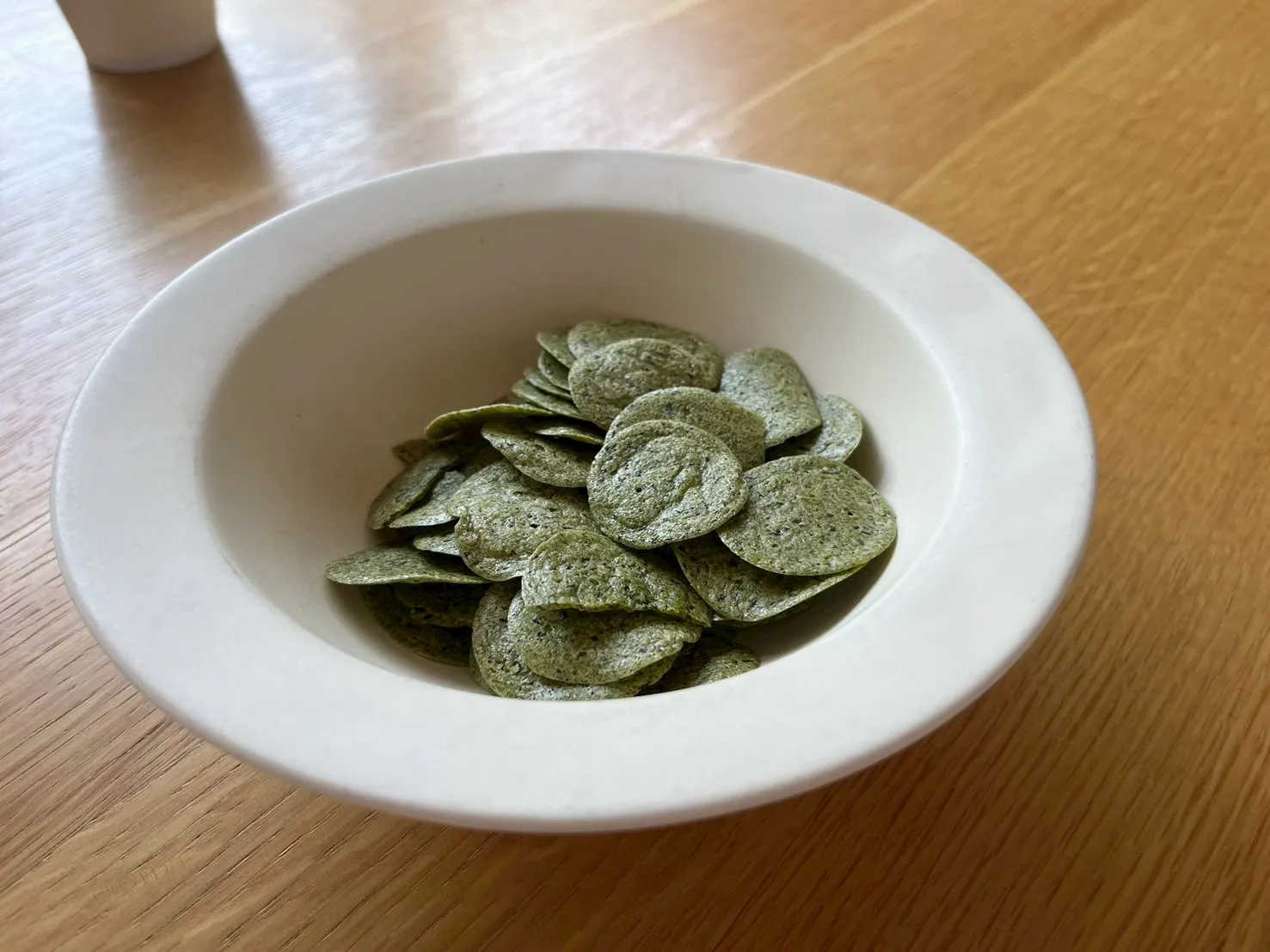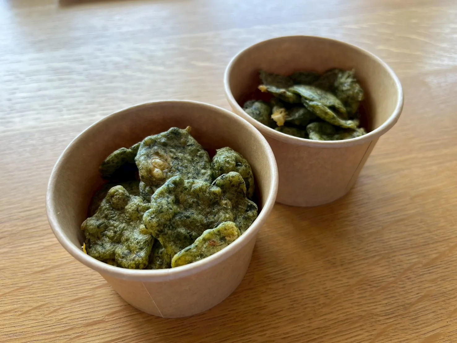 モッカ!は、ペースト状にしたわかめに米粉・米油・藻塩を加えて焼き上げるシンプルな製法。ノンフライのため手が汚れず、アレルギーにも配慮し、小さな子どもでも安心して食べられるよう工夫されています。素材の味を活かした優しい風味で、親子でシェアできるのも魅力です。