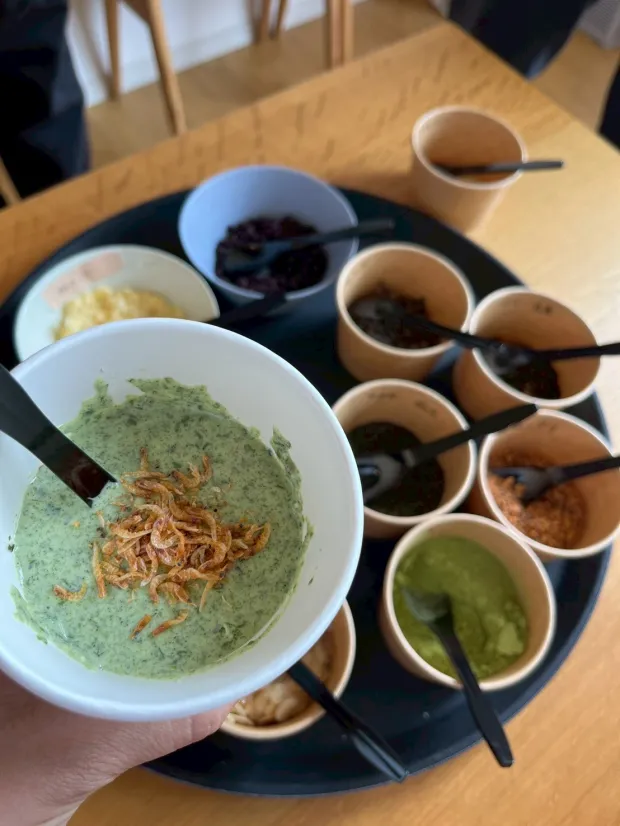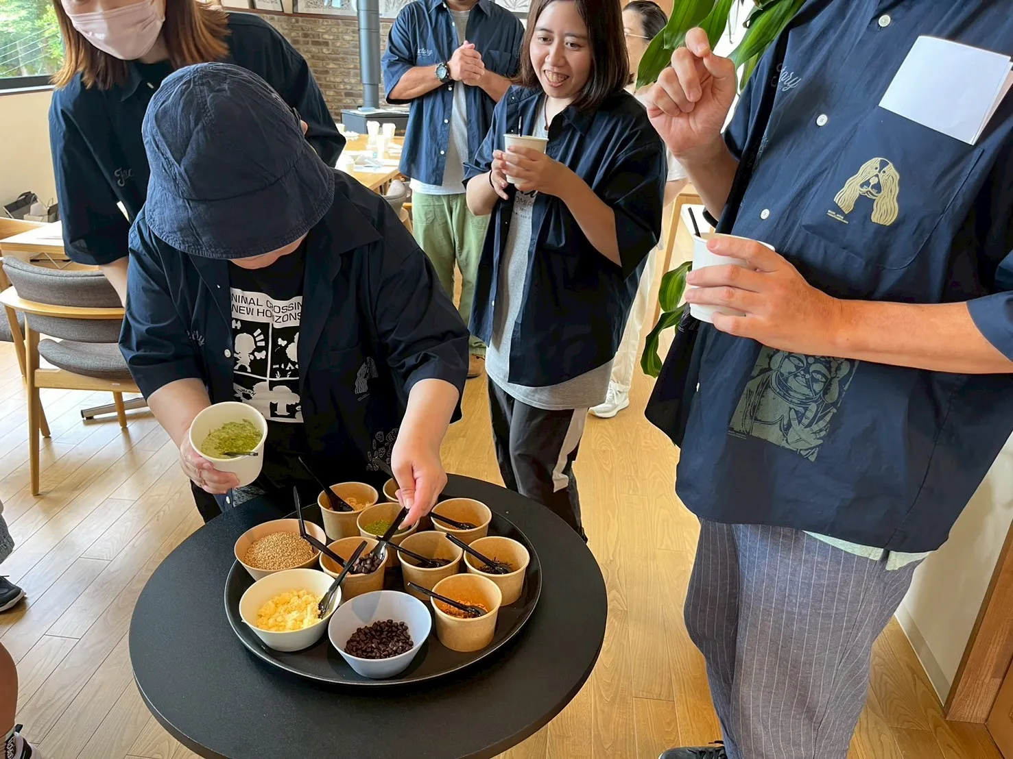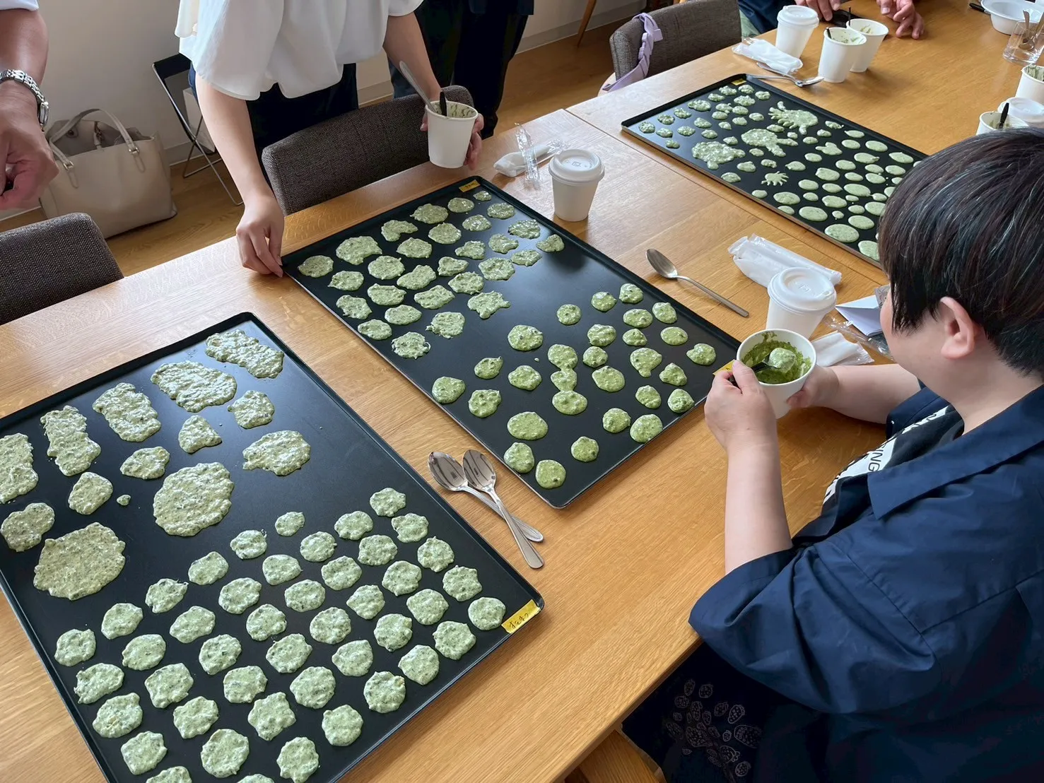 当日はモッカ作りのワークショップも開催され、ベース生地に好きな味を加えて広げ、焼き上げる工程を体験。(スタッフは、粉チーズ・海藻ブレンド・エビ味にしました。)