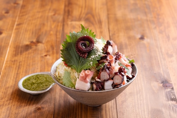 真蛸と大葉、青ネギ、オリーブオイル、にんにくなどの厳選素材をペーストにした自家製和風ジェノベーゼをパルミジャーノ・レッジャーノで仕上げた「真蛸のジェノベーゼ」1,790円(税別)、